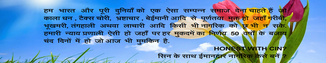 HONEST WITH CIN? тАФ{(тАШCINтАЩ -Citizen Identification Number) рдХреЗ рд╕рд╛рде рдПрдХ рдИрдорд╛рдирджрд╛рд░ рдирд╛рдЧрд░рд┐рдХ рдХреИрд╕реЗ рдмрдиреЗрдВ?)} рд╡рд┐рд╢реНрд╡ рдХреА рдкрд╣рд▓реА рдРрд╕реА рдЯреЗрдХреНрдиреЛрд▓реЛрдЬреА рдЬреЛ рдХрд┐рд╕реА рднреА рджреЗрд╢ рдХреА рд▓рдЧрднрдЧ рд╣рд░ рдкреНрд░рдгрд╛рд▓реАрдЧрдд рд╕рдорд╕реНрдпрд╛ рдХрд╛ рд╡реИрдЬреНрдЮрд╛рдирд┐рдХ рд╕рдорд╛рдзрд╛рди 100 % рдИрдорд╛рдирджрд╛рд░реА рдПрд╡рдВ рдкрд╛рд░рджрд░реНрд╢рд┐рддрд╛ рдХреЗ рд╕рд╛рде рджреЗрддреА рд╣реИред